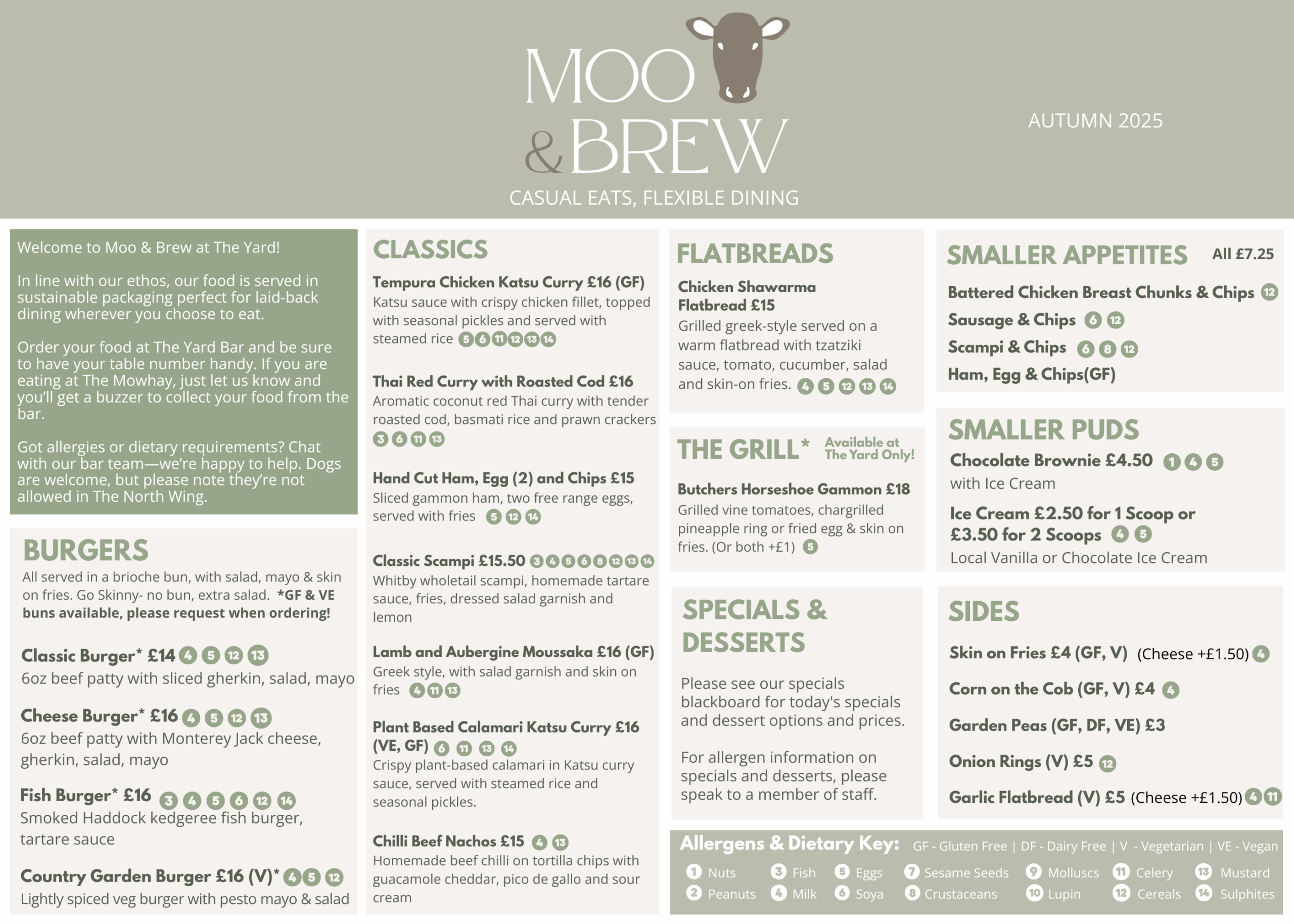 Moo & Brew offers everything you loved about the Courtyard menu – with a more relaxed, informal twist. Expect delicious favourites like our Wooda burgers, plus some exciting new options including healthier, gluten-free, and veggie dishes. Moo & Brew will not be offering formal dining service, but instead meals are served in sustainable packaging in line with our ethos, making it easy for you to enjoy your food wherever you like – inside The Yard, out on the terrace, or at The Mowhay.