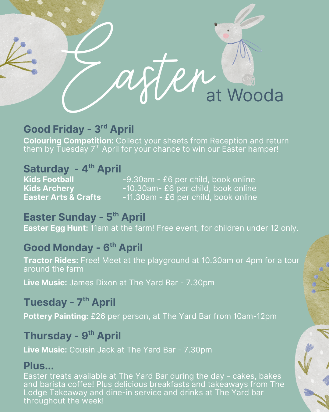 Anyone that has stayed with us over Easter before will know just how magic this time of year is at Wooda! We’ve held an annual Easter Sunday Easter Egg Hunt for many years now, and it’s always a huge hit down at the farm!